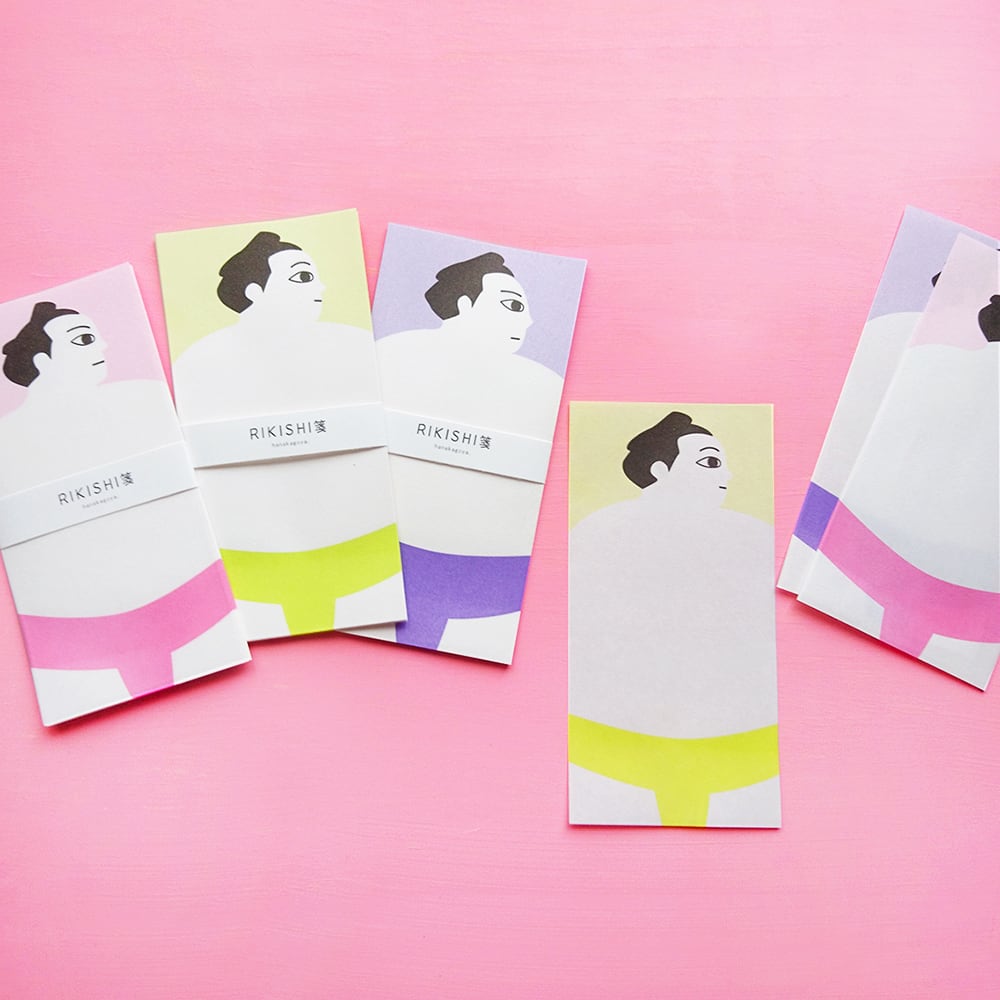 カラフルなお相撲さんが目にも鮮やかな、ポップ&シンプルな一筆箋です♪