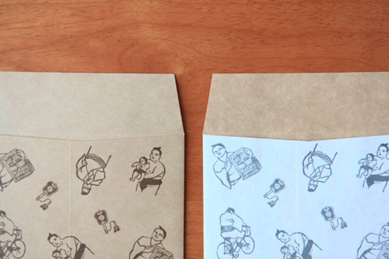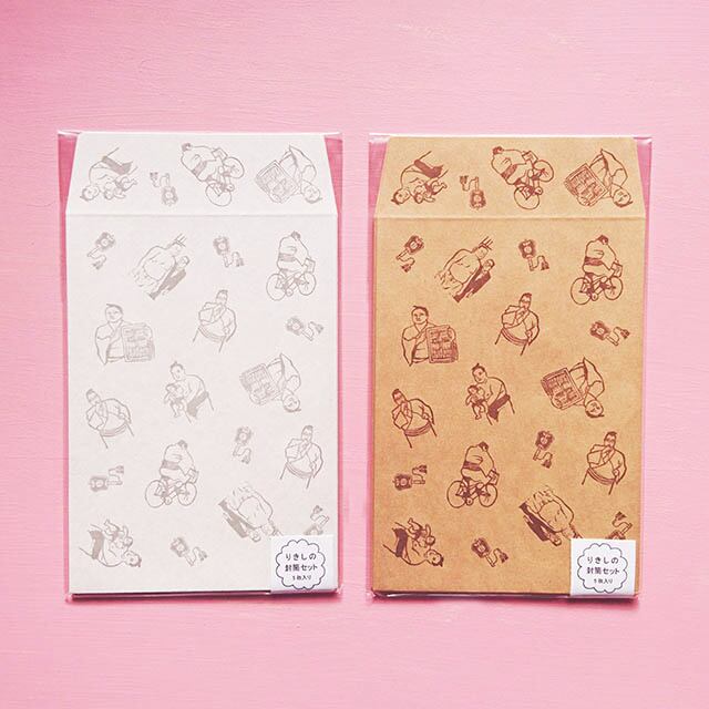 りきしの柄が個性的な封筒セットです。封筒はクラフト感のある質感です。