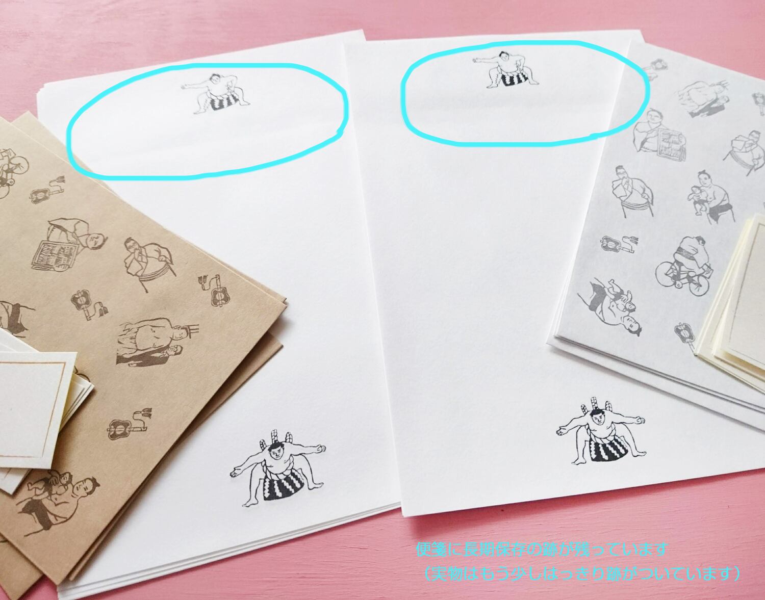 ・相撲レターセット 封筒が白&茶 各1set(販売終了品。便箋に長期保存の跡があります)