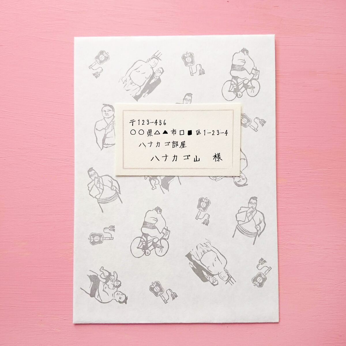りきし柄が個性的な封筒と宛名シールのセットです。